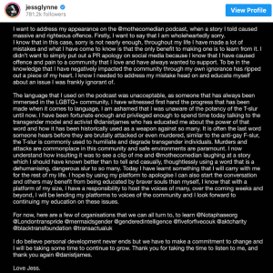 Jess wrote on Instagram she is “wholeheartedly sorry” after a clip was posted online and heavily criticised.