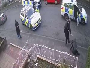 The CCTV footage showed three Lancashire police vehicles pulling up behind a man who was identified as 34-year-old Adeel Ashraf. Ashraf was walking along the pavement in Accrington.