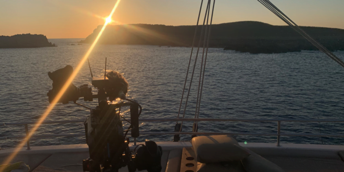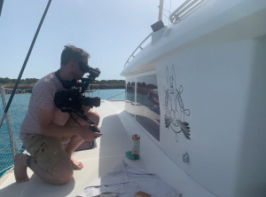 Luke filming on a Catamaran in the Med