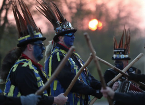 Members of the Hook Eagle Morris Men performed near the village of Hook, Hampshire, to mark the May Day dawn on Saturday, in their first show since January 2020.