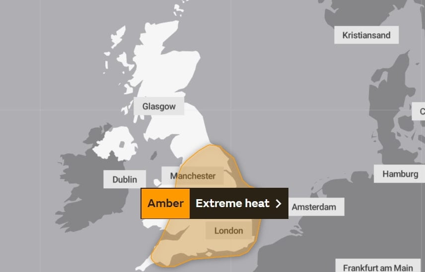 They added: “Some exceptionally high temperatures are possible and cumulative effects of warm nights and hot days are expected to bring widespread impacts to people and infrastructure. This period of hot weather is expected to continue into the early part of next week, hence an update extending this warning into Monday is likely.”