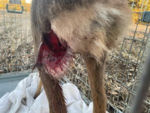 The deer sustained injuries along with others that suggest an attack from another deer, prompting the need for emergency appointments and operations.
